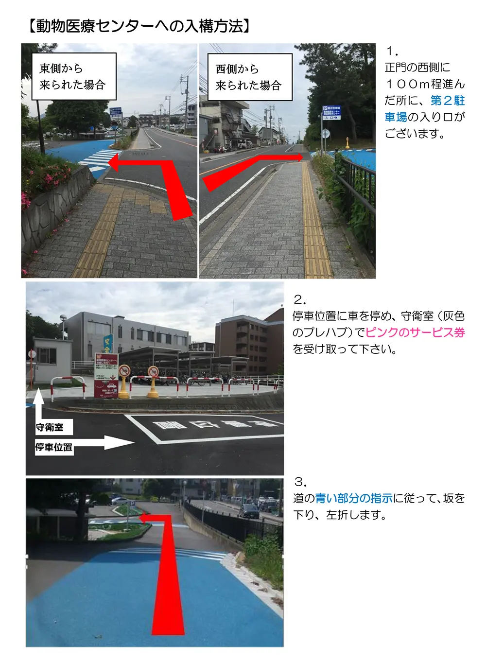 第2駐車場から動物医療センターへの詳しい説明